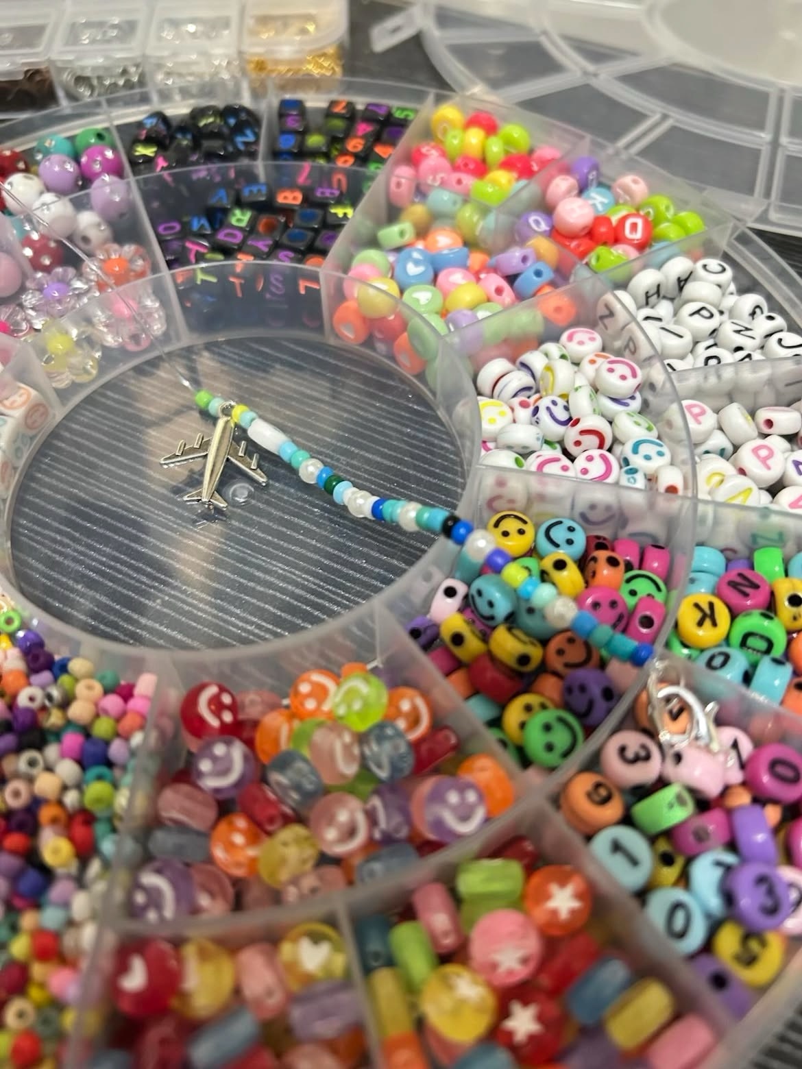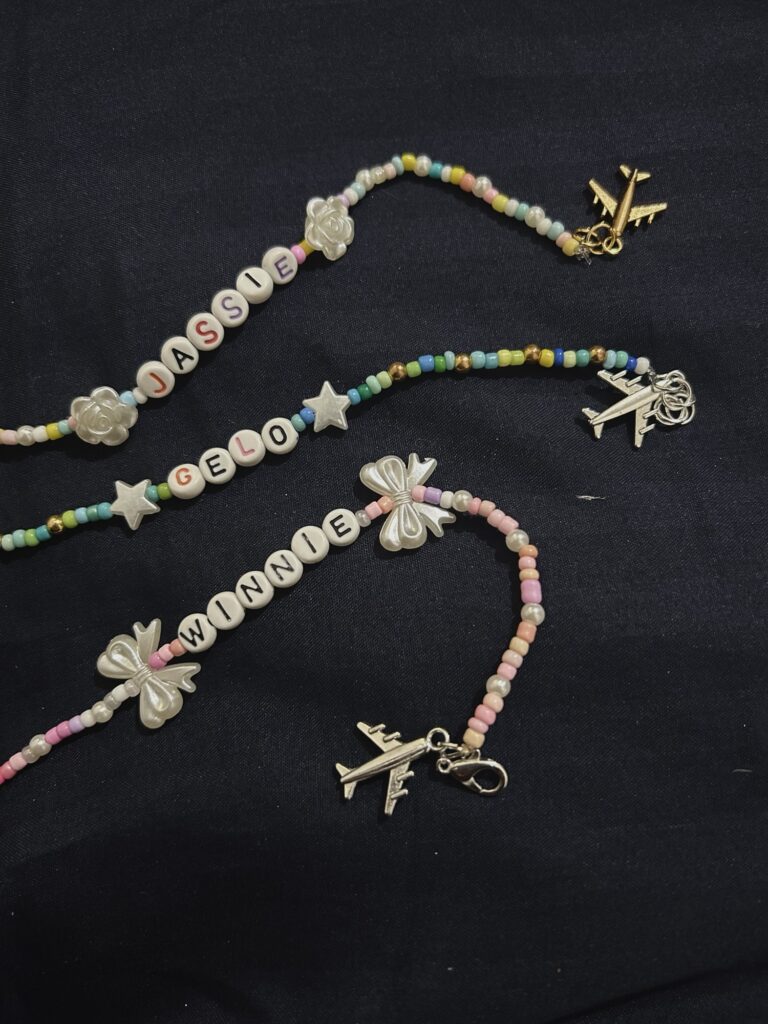 My first few designs were custom bracelets — one for Caleb, and a few for my best friends. We love traveling together, so I added airplane charms as a small detail that holds meaning.